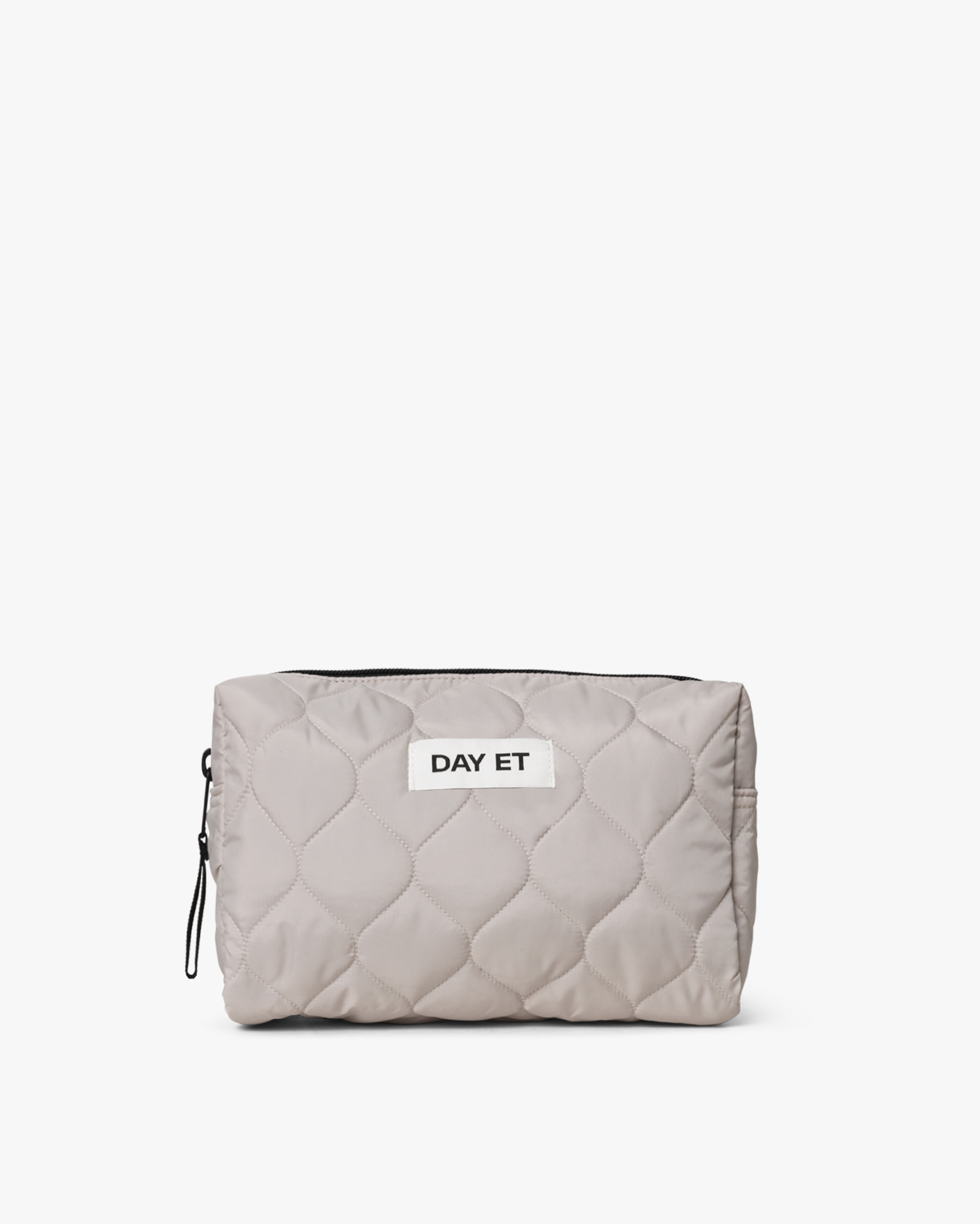 En quiltet toilettaske i en praktisk størrelse, som gør det let at opbevare dine vigtigste produkter. Den lukkes med lynlås og har en åben lomme indvendigt.