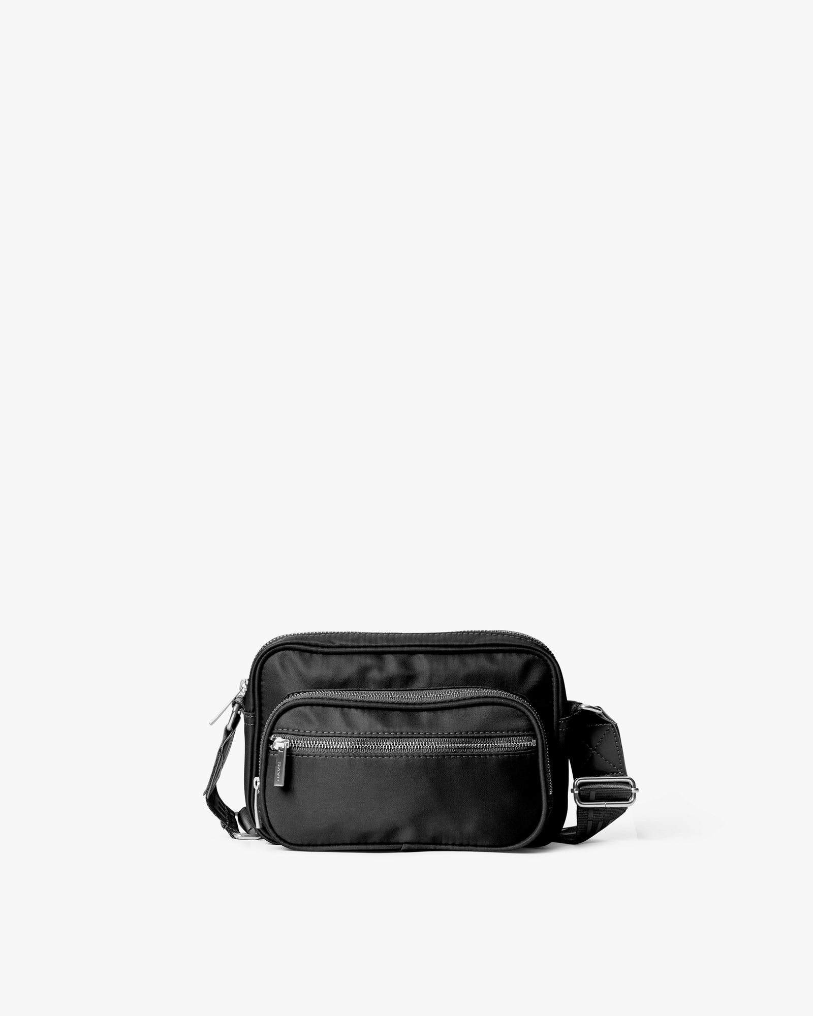 Denne taskes ydre stof og inderfor er lavet af genanvendt materiale. Tasken lukkes med en lynlås, og den har flere indvendige og udvendige lommer, så du nemt kan organisere dine sager. Den har sølv detaljer, og stroppen er justerbar, så den kan tilpasses, så du kan få den ønskede pasform.