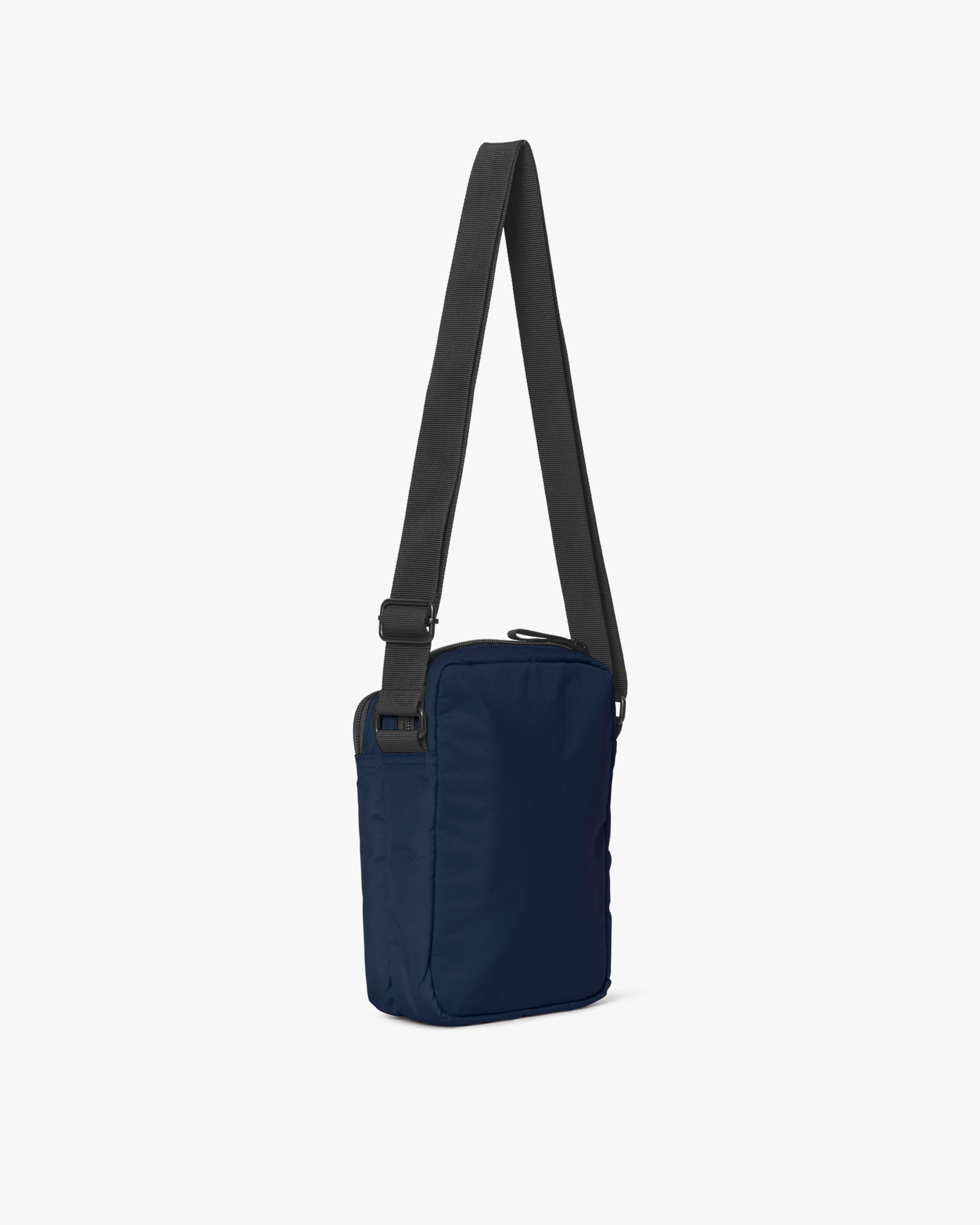 Denne taske er fremstillet i genanvendt materiale og har et polstret yderstof, der giver en stabil form. Tasken er designet med en lynlåslukning, et rummeligt hovedrum med en åben lomme samt et front-rum med lynlås til ekstra opbevaring. Den justerbare crossbody-strop giver fleksibilitet, så du kan bære den på den måde, der passer dig bedst.