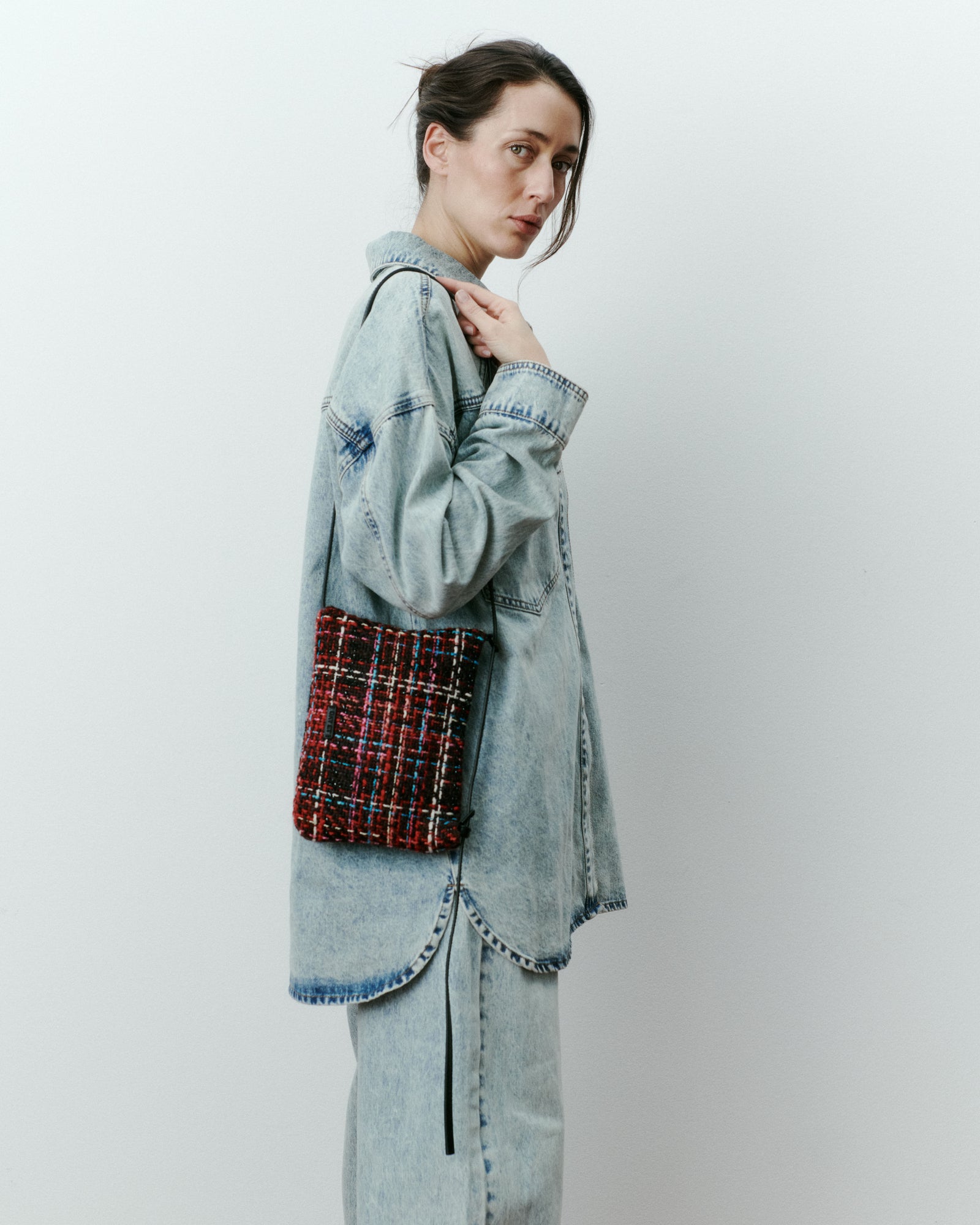 Denne crossbody taske er lavet i multifarvet bouclestof, der giver den et iøjnefaldende og struktureret udtryk. Den har en praktisk indvendig opdeling med både en åben lomme og lynlåslomme, og tasken lukkes med en sænket lynlås. Den justerbare rem i imiteret læder har et bæltespænde som en fin detalje, og en smart detalje ved hanken gør det muligt at bære tasken både almindeligt eller på højkant for et anderledes udtryk.