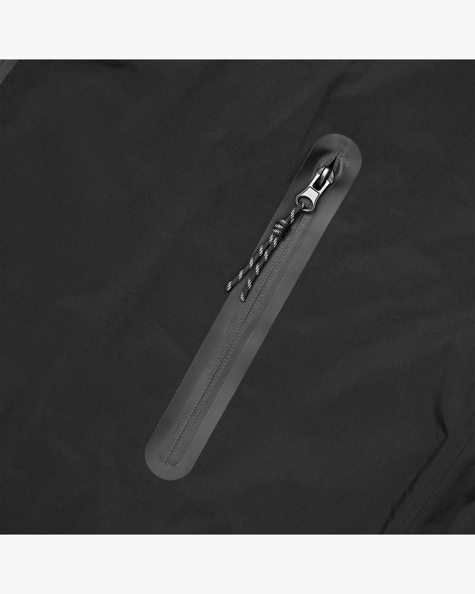 Denne funktionelle regnjakke er designet til at holde dig tør og komfortabel, selv på de mest regnfulde dage. Den har justerbar hætte med stormskygge, der kan tilpasses både i siderne og bagpå, så du får optimal beskyttelse. Jakken lukkes med en vandtæt to-vejs lynlås, der også gør den god til cykling, og en hagebeskytter sørger for ekstra komfort. De to forlommer med vandtætte lynlåse holder dine ting sikre, mens velcro ved ærmekanterne og elastisk snøretræk i taljen giver et mere tilpasset fit. Indvendigt har den meshfor og ventilationsåbninger i ryggen for øget åndbarhed. Sporty snoretrækdetaljer ved lynlåsene, et praktisk ophængningsloop og elastiske skulderstropper der giver mulighed for at bære jakken åben fuldender designet. Med tapede sømme og evnen til at modstå et vandsøjletryk på 10.000 mm er den klar til at modstå selv kraftig regn. Modellen er 175 cm høj og bærer en størrelse S.