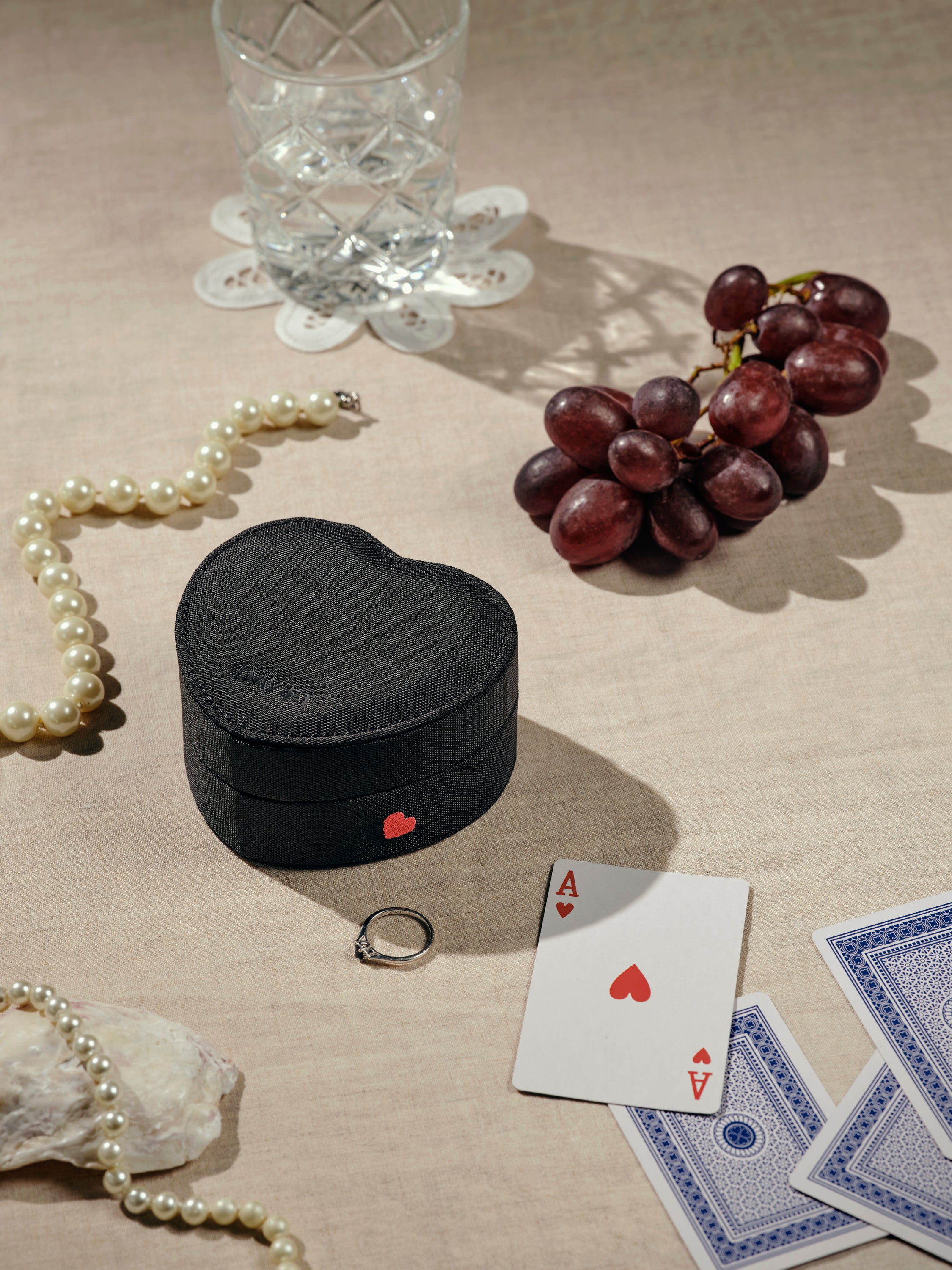 Dette lille smykkeskrin er perfekt til opbevaring af dine yndlingssmykker både i hjemmet og på farten. Det er formet som et hjerte, og på den ene side er der broderet et lyserødt hjerte. Det beskytter dine smykker og holder dem organiserede. Det er perfekt som gave!