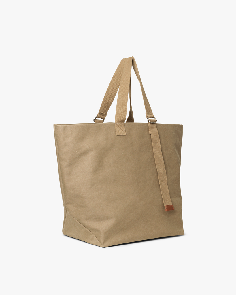 En rummelig shopper taske i kraftigt bomuldslærred med et afslappet og naturligt look. Tasken har to justerbare skulderstropper med en karakteristisk detalje, hvor stroppen hænger løst ned og giver tasken et casual udtryk. Indvendigt finder du både en lynlåslomme og en åben lomme til småting. Tasken lukkes med en krog, og læderdetaljer indvendigt og ved stropperne giver et gennemført finish. En forstærket bund gør tasken stabil og slidstærk i brug.