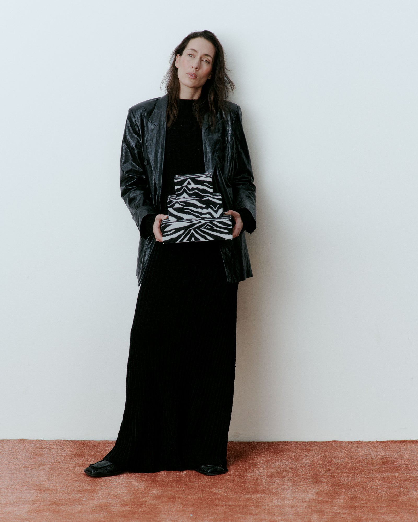 Dette mellemstore smykkeskrin har plads til det meste – med flere rum og kroge til halskæder. Det jacquardvævede ydre med zebramønster, blød sort velour indvendig og den magnetiske lukning giver et både funktionelt og stilfuldt udtryk.
