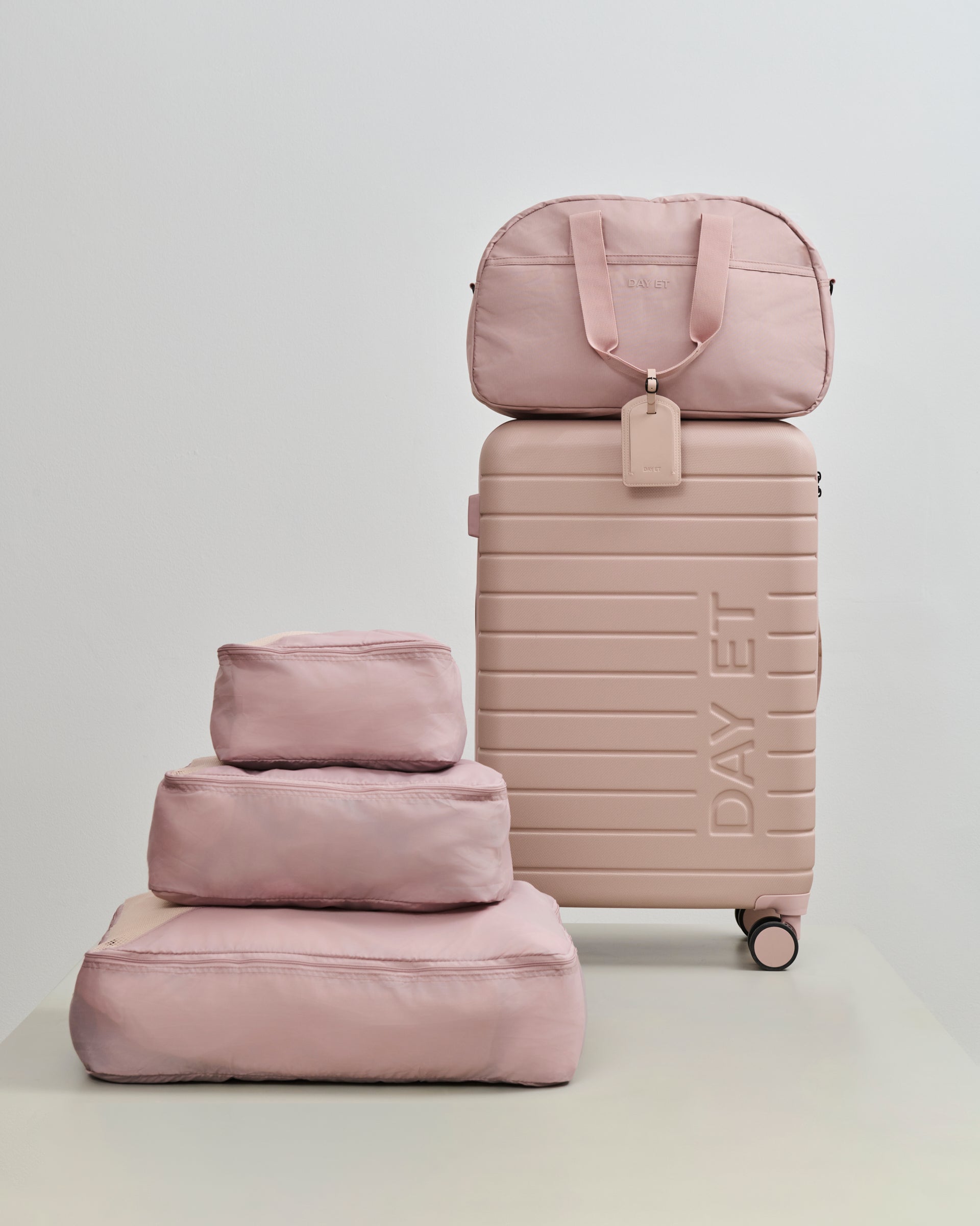 Sættet indeholder alt, hvad du skal bruge til din rejse: 1x 24" Tonal Suitcase, 1x Large Tonal Nylon 1Nighter Rejsetaske, 1x Suitcase Packing Cube Set og 1x Luggage Tag.