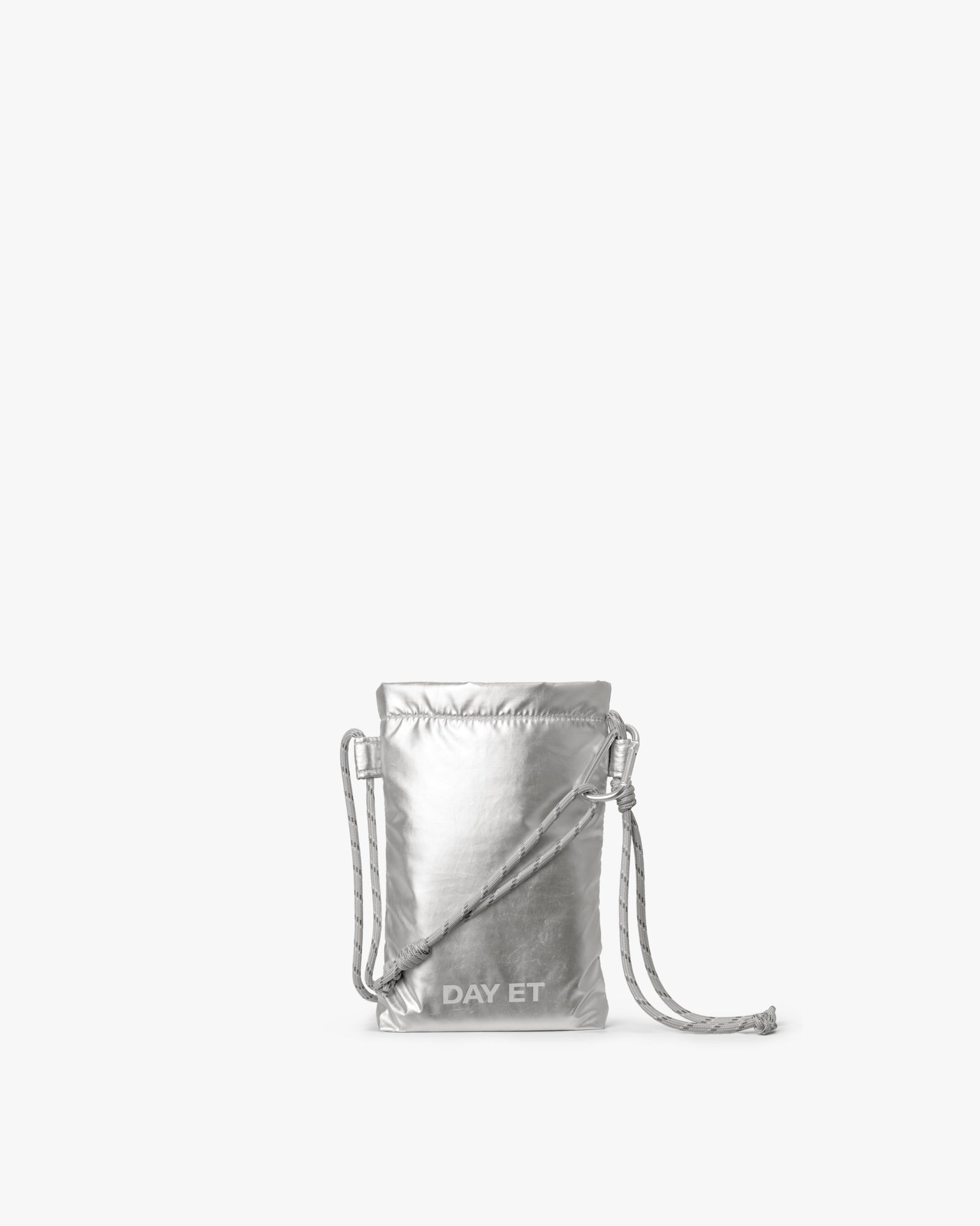 En kompakt taske designet til at holde din telefon tæt på, når du er på farten. Den justerbare paracord-strop gør det nemt at tilpasse længden, og karabinhagen gør tasken nem at tage af og på – perfekt under en jakke eller fastgjort til en anden taske. Det lette materiale og det sølvfarvede finish giver et stilrent udtryk. Taskens yderstof og inderfor er lavet af 100% certificeret genanvendt materiale.