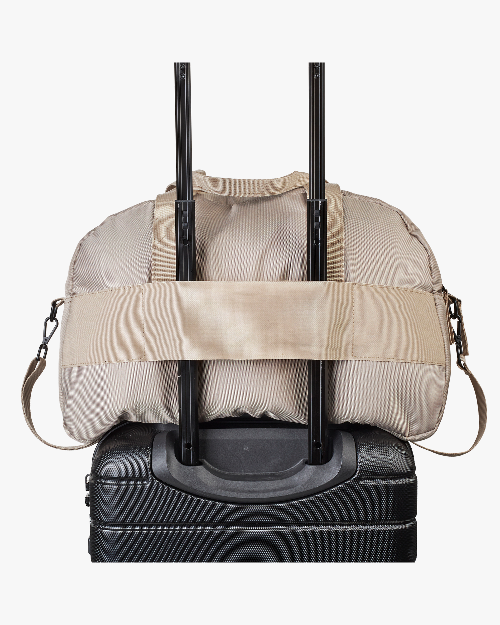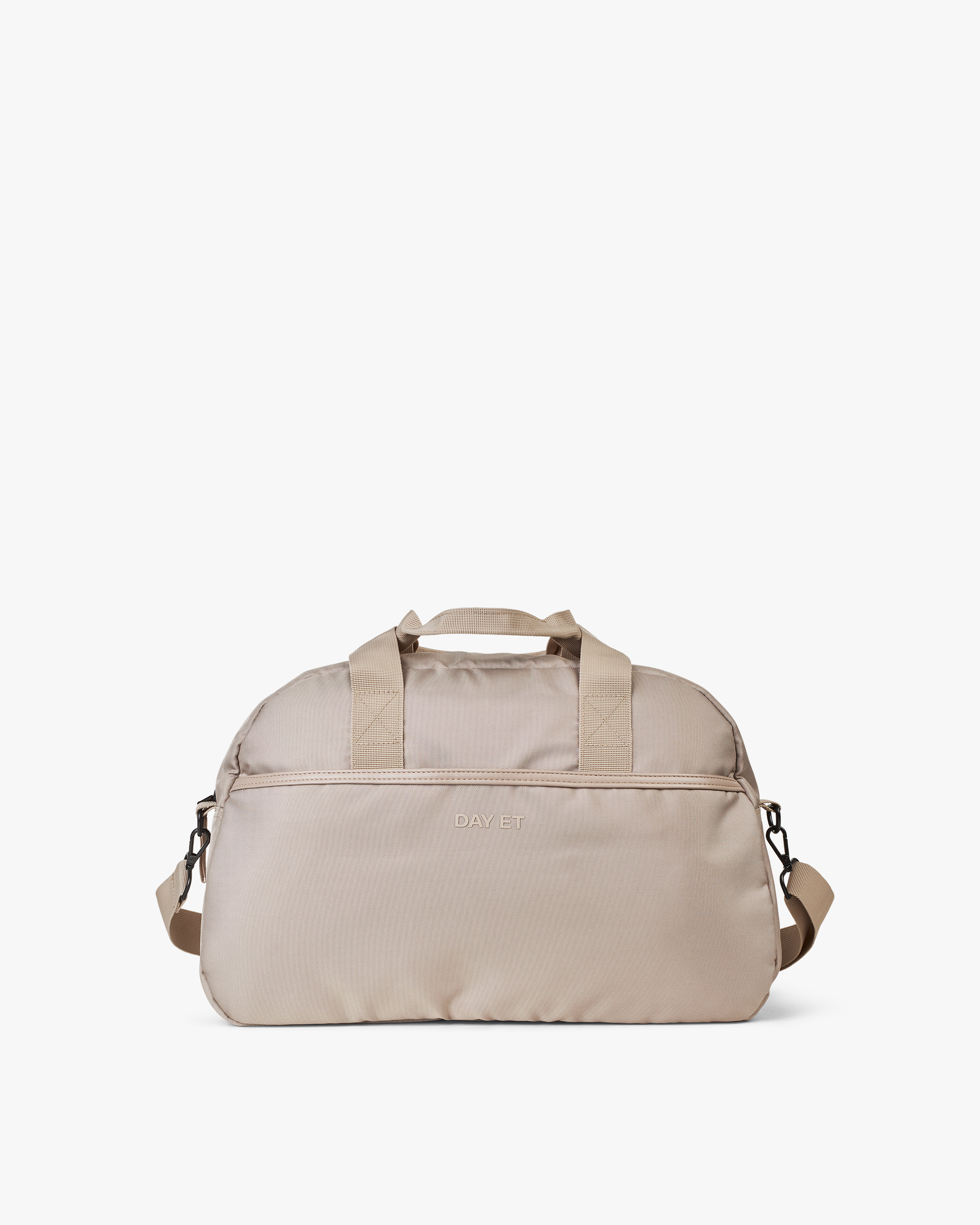 Denne funktionelle taske er perfekt til en getaway. Dens ydre stof og inderfor er lavet af genanvendt materiale. I hovedrummet er der plads til en 13" computer, og tasken har flere lommer, så du kan organisere dine sager. Tasken har både to kortere håndtag og en aftagelig og justerbar strop, så du kan bære den over skulderen og som crossbody. Den har også en strop bagpå, så tasken kan fastgøres til en kuffert.