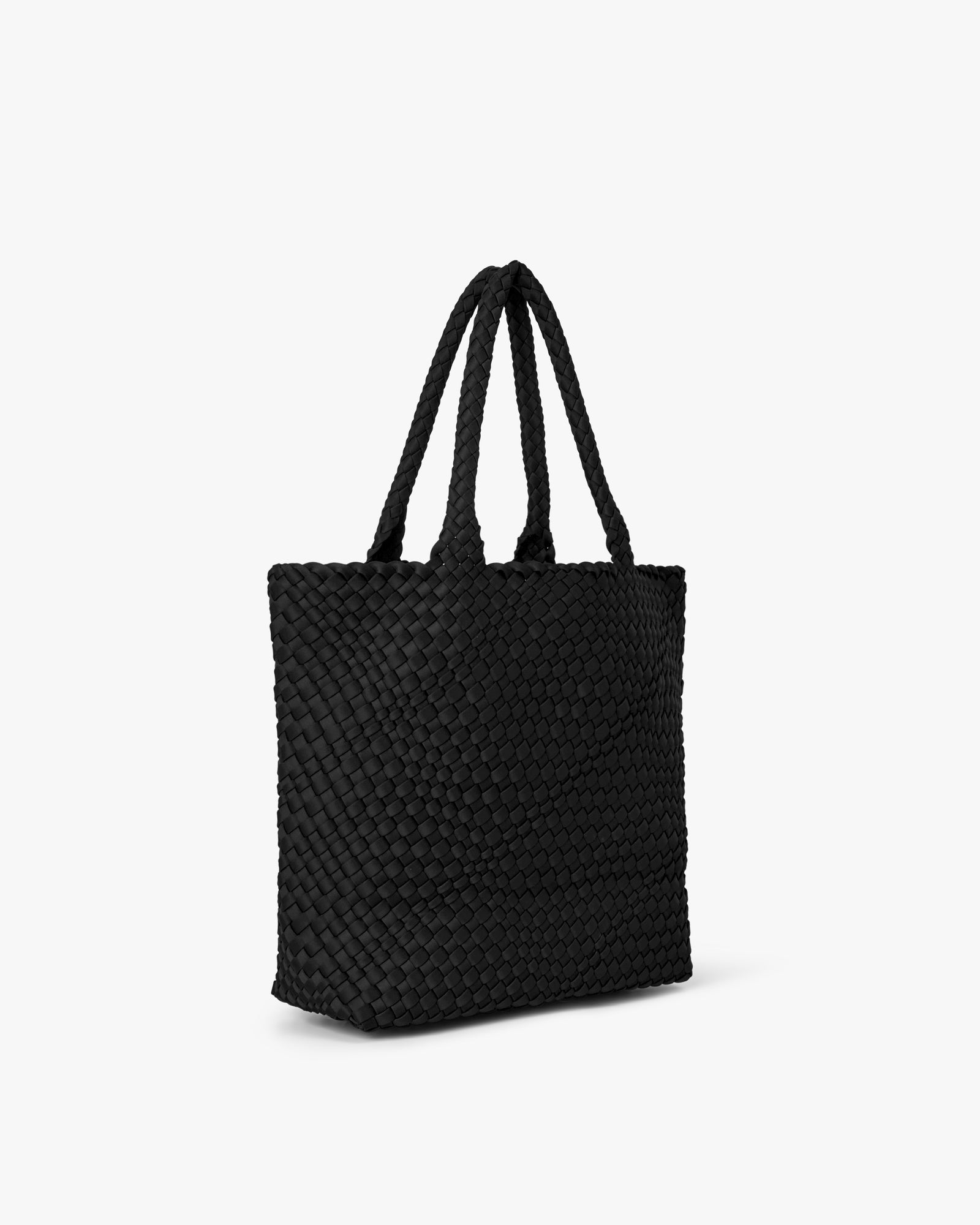 Denne rummelige taske er håndflettet i opgraderet neopren og kombinerer et blødt og struktureret udtryk med praktiske funktioner. Det åbne hovedrum og faste bund giver nem adgang og god stabilitet. Kan bæres som skuldertaske eller stor håndtaske – ideel til både hverdag og arbejde med plads til computer og mere.