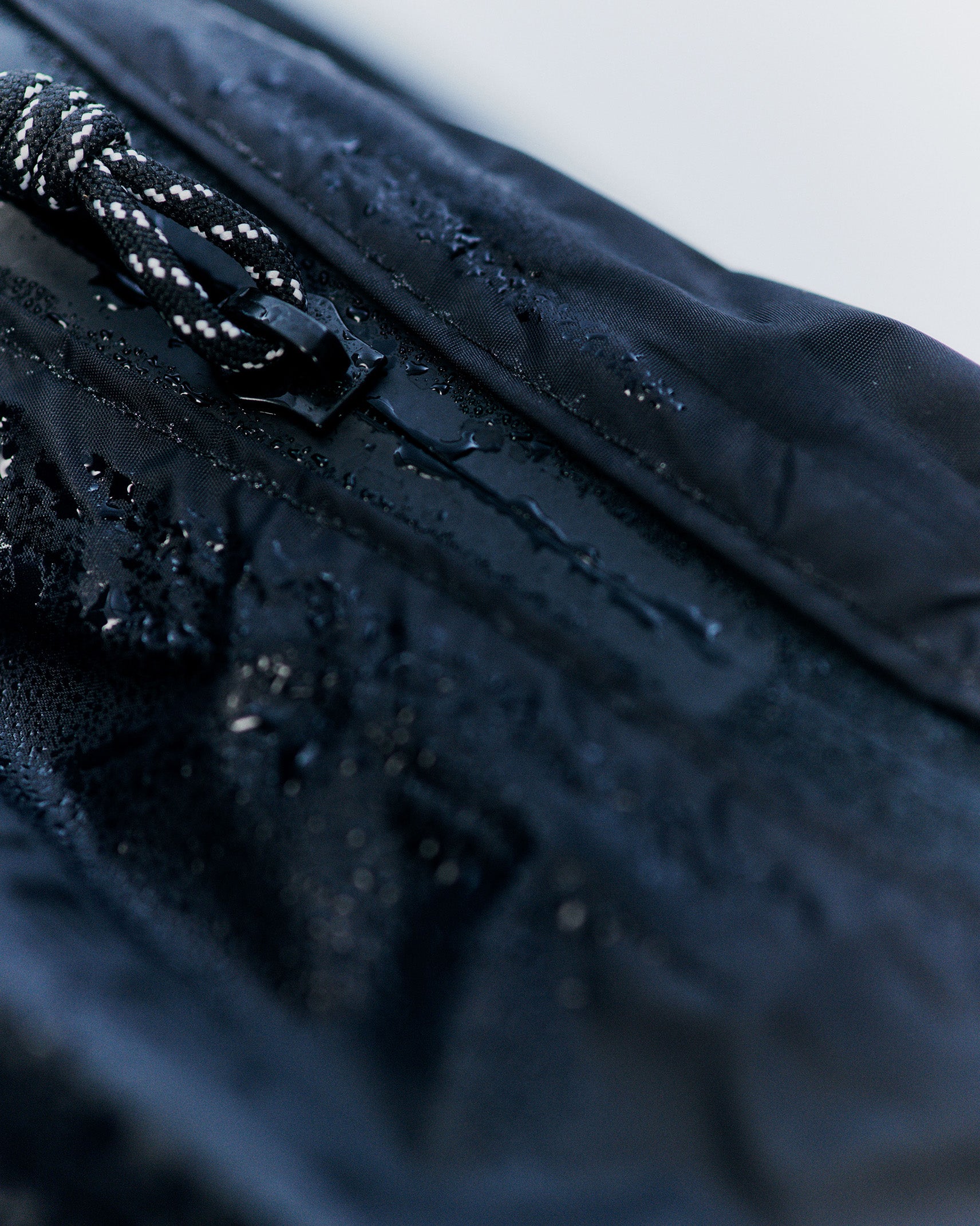 Denne funktionelle bæltetaske er designet i et genanvendt vandafvisende materiale. Den lukkes med en vandtæt lynlås, og den har både en indvendig og en udvendig lomme. Taskens strop er justerbar og har et spænde, så den kan tilpasses. Den er designet i et letvægtsmateriale og kan både bæres som crossbody og rundt om maven.