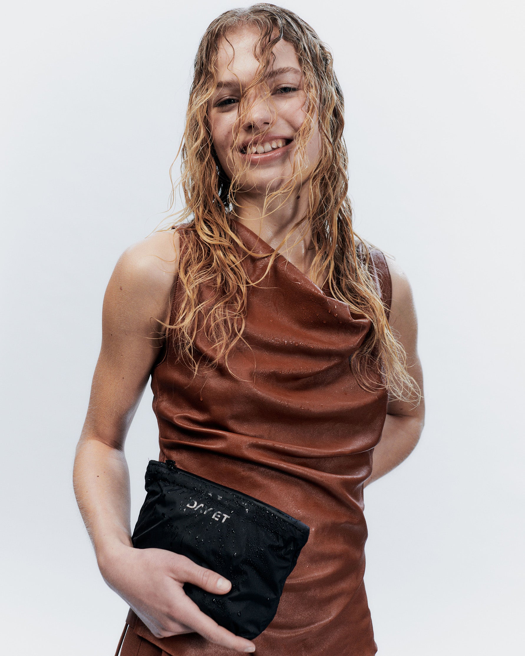 Denne unisex mini er designet i et genanvendt vandafvisende materiale, som kan modstå et vandsøjletryk på 2100 mm. Den lukkes med en vandtæt lynlås, og den er designet i et funktionelt letvægtsmateriale.