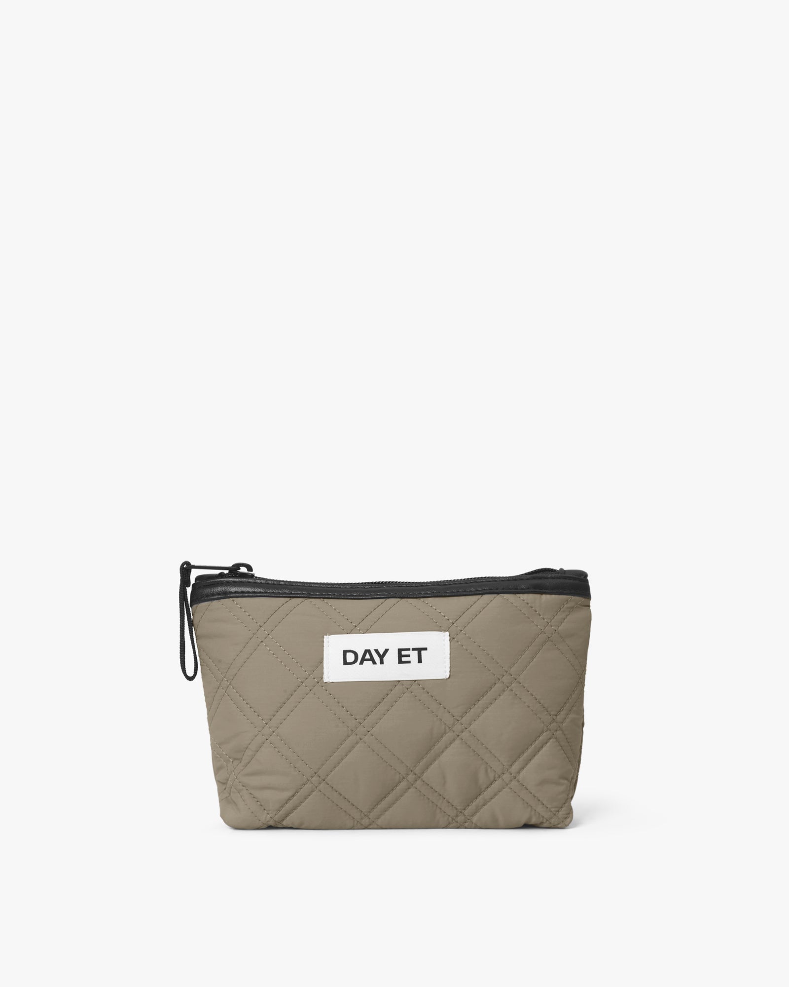 En lille toilettaske i quiltet materiale med lynlåslukning. Den har plads til 1,1 liter og er ideel til opbevaring af dine vigtigste toiletsager. Taskens yderstof og inderfor er lavet af 100% certificeret genanvendt materiale.