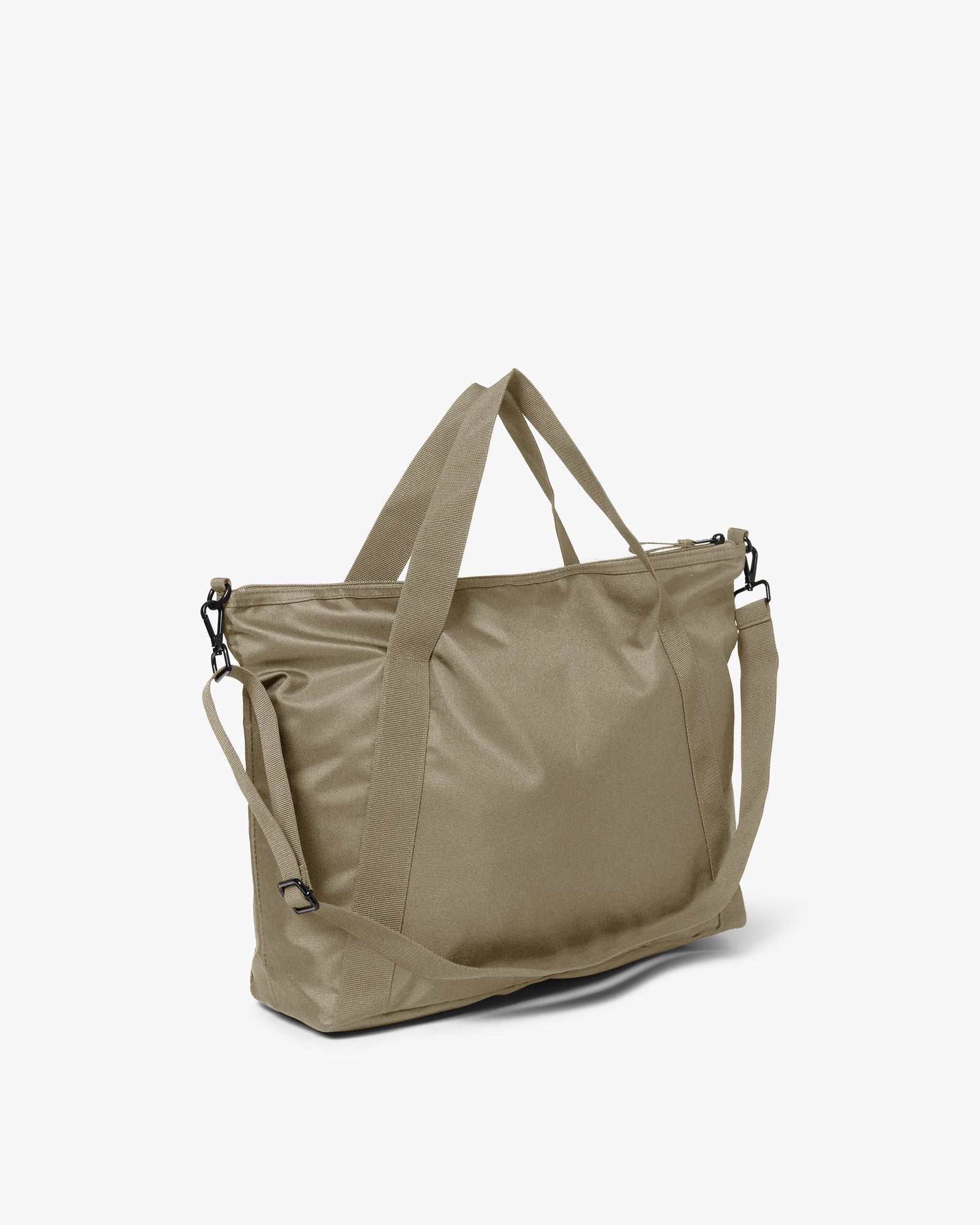 Denne alsidige taske har et enkelt, tonalt design og er velegnet til hverdagsbrug. Hovedrummet lukkes med lynlås og indeholder en indvendig lynlåslomme til mindre genstande. Den har to korte hanke og en aftagelig, justerbar strop, så du kan bære den over skulderen eller som crossbody. Taskens yderstof og inderfor er lavet af 100% certificeret genanvendt materiale.